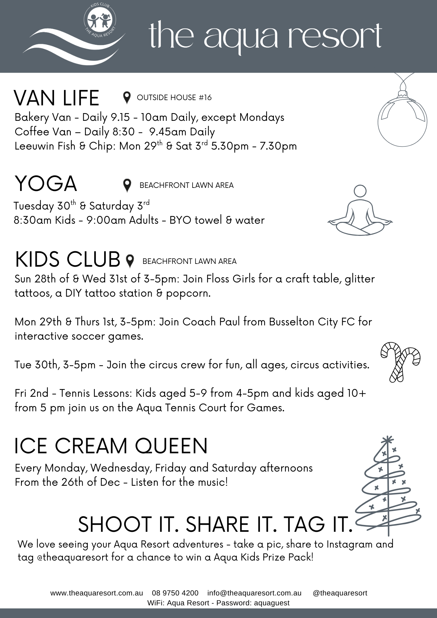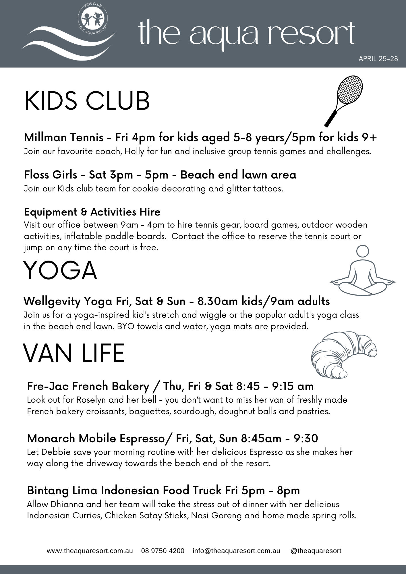 Our Aqua Kids Club generally runs Monday - Friday during the school holidays and long weekends.